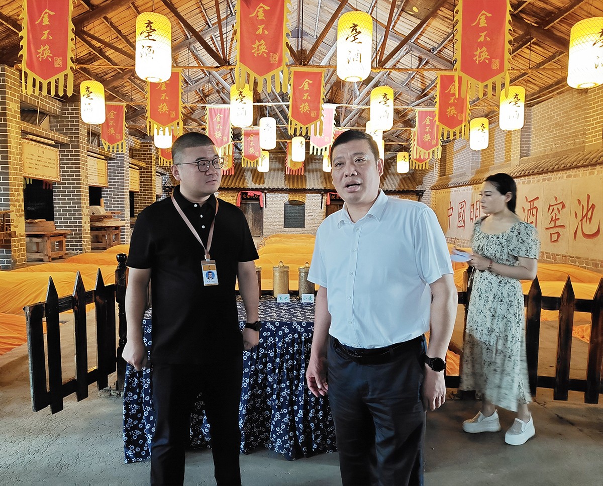 宋保眾一行查看了金不換1號藏酒庫、明代窖池群生產(chǎn)車間、新建智能化倉儲和包裝車間、建設(shè)項目用地、亳酒城市會客廳等,對金不換廠榮廠貌整潔優(yōu)美的環(huán)境給予高度贊揚,對藏酒規(guī)模、數(shù)量和白酒高質(zhì)量發(fā)展給予充分肯定,對金不換發(fā)展的前景充滿信心。